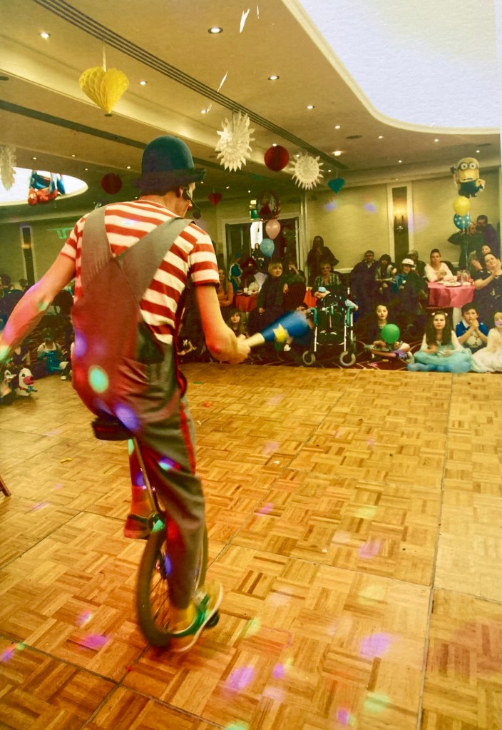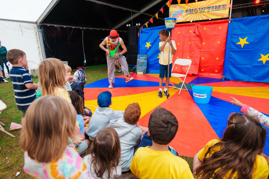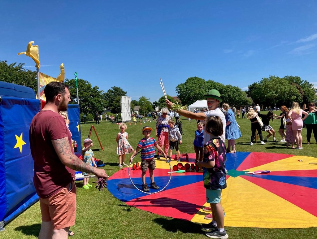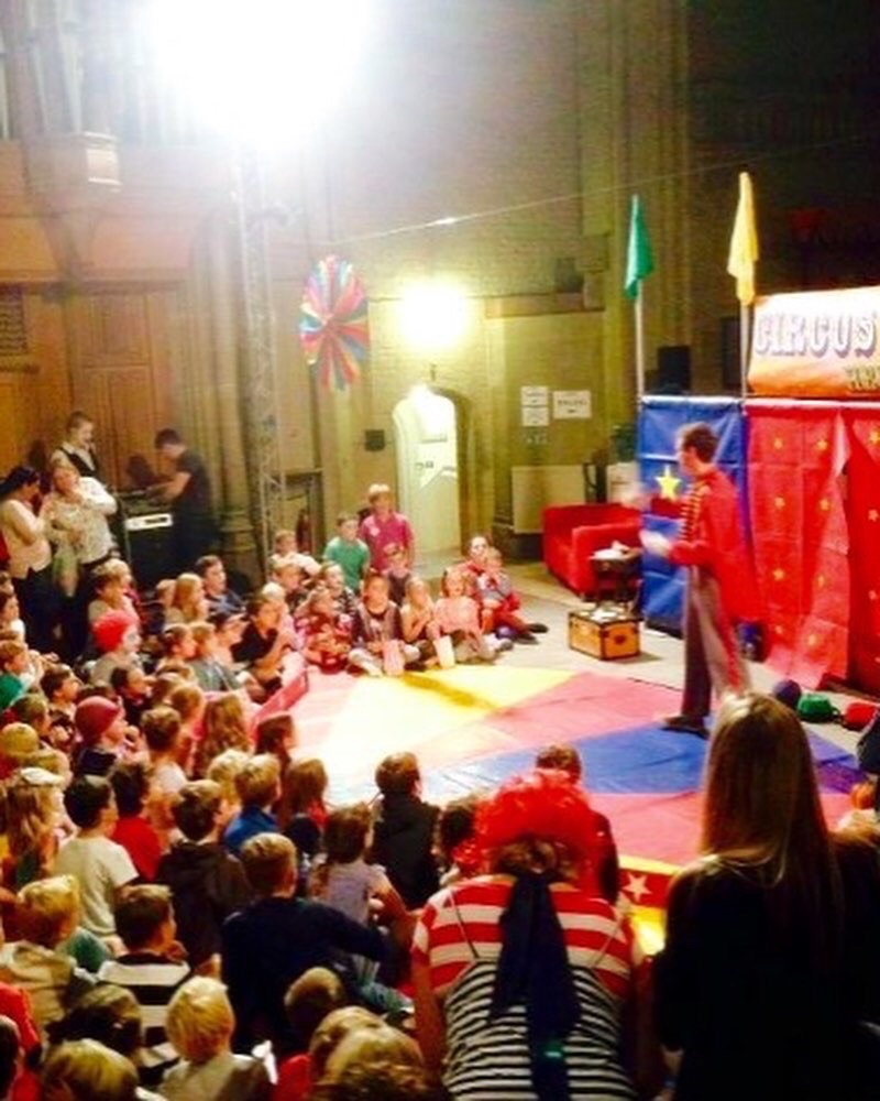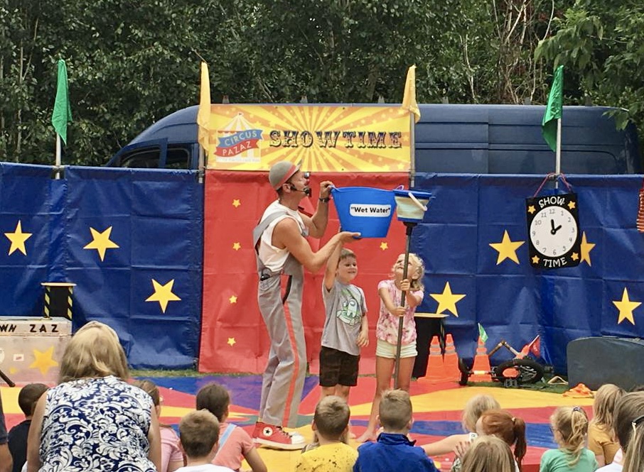 With Tilly & the team taking the bigtop tent out it meant that I could choose not to do some of the school tour particularly during the week due to my own family commitments & also could take any smaller event jobs were the bigtop wasn’t required often more locally + for the 1st time circus pazaz could be in 2 locations at the same time ie the main tent & the small 20ft tent with open air show, which is exactly what we did as we were invited & shipped back to the channel Islands for our 6th time to supply our family entertainment for the brilliant Alderney week community festival last year’s being the 73rd held!. Took the kid’s along to the British Juggling Convention in Ramsgate, did some children’s charity visits as well as a few children’s birthday parties back in a good old hall or function room again! Zaz took the little clowns to quite a few events to either provide a playscheme circus workshop or clown show, here are a few photos of us in action! Looking forward to next summer already get in touch if you would like more info on booking us for your event!