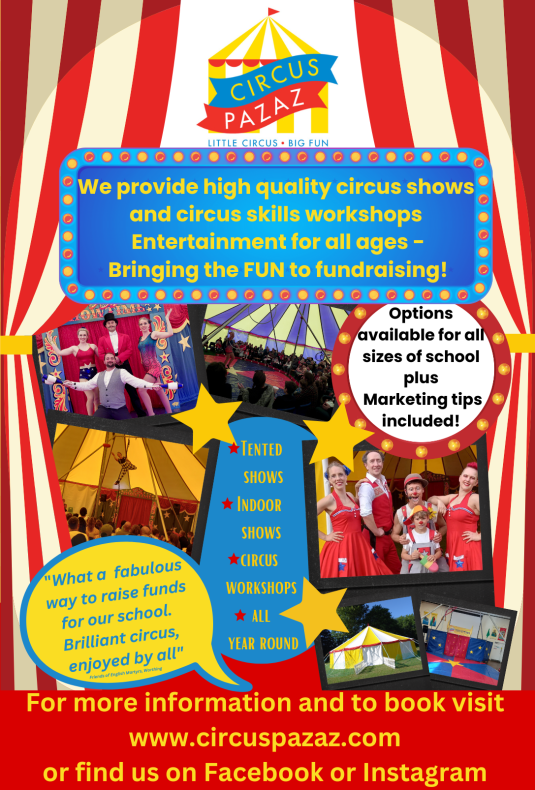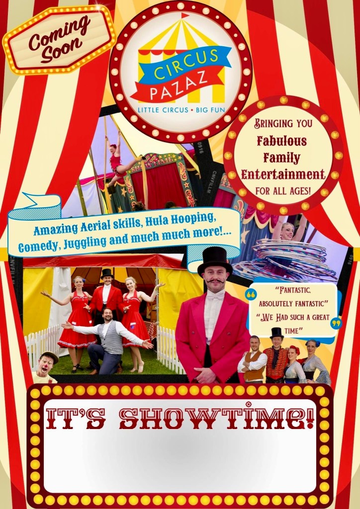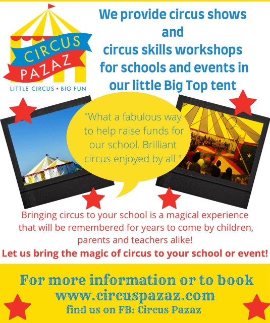 We are also taking bookings for Circus Pazaz in our little bigtop tent for summer 2023 School fetes, family festivals and corporate events contact us Now! www.circuspazaz.com for a quote or if you are on a school pta we have an all you need to know info pack for schools & pta’s
