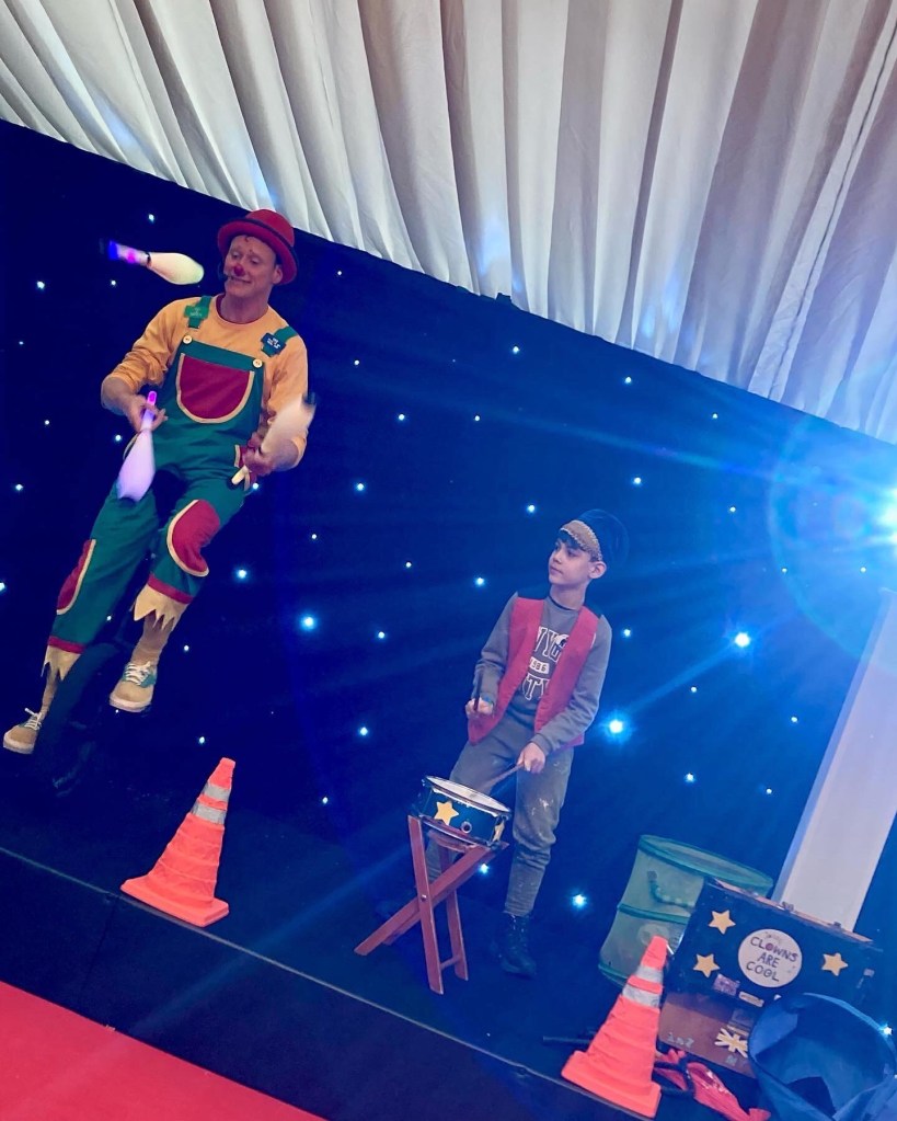 This summer like many families my children & I have been to a few exciting places in search of fun in the sun during the school summer holidays & being a kidz/family entertainer often during the holidays it is fine for me to ‘bring the kids to work’ especially as since covid, my two little clowns now age 8 & 10 have been practicing their circus skills & can perform in some of the shows or help to inspire other children at circus workshops with me when they want too, for pocket money & popcorn of course! Also the big change about circus pazaz that comes with the small but complete bigtop show is that like many small businesses after the uncertain covid period we were very close to closing down completely, especially as our old but well looked after tent was now well over 20yrs old & we were aware the canvas top & walls were in need of replacing. However, we are pleased to say that Tilly Twist who has been involved for the majority since 2013 has now become joint partner! We are proud to say that we did visit all the schools that we had booked in since 2019 as well as many new schools booking in 2022 – from Eastbourne to Pontypridd this summer ’22 we set up our little bigtop show in over 30 locations! (you can read more about circus pazaz’s summer tour here)