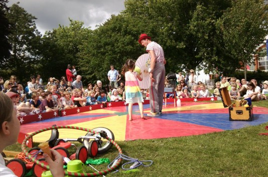 Last saturday was part 2 of the Dromos free youth arts festival. The Sun shone all day for circus workshops in Horsham park. Great circus skills from the kidz, we met one little girl from Germany who’s family just moved to the UK, she was very pleased to show me & Clever Kev her Unicycle riding, age 7 she has now learnt to unicycle on her own! her parents said that she “just wanted to learn” & has! Lets hope she will now buy her own unicycle to practice on because young OR old Unicycling is So good for fitness & fun! Also we had a fantastic kidz drumming workshop by great kidz musical teacher Ollie Heath from Rhythm Masters its always nice to see the mini circus used for different kids activities. We hope to help with Dromos again next year it really is a great local free festival!