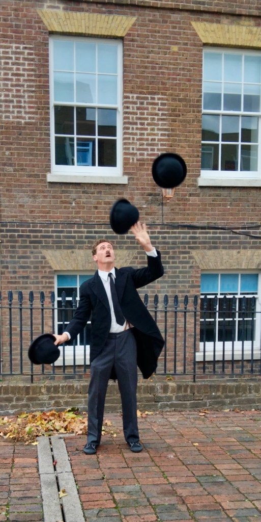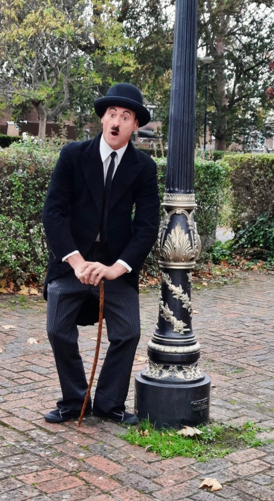 Charlie Chaplain character suitable for Nursing/care home entertainment themed events, parties and Carnivals. Interactive show time with meet and greet audience participation. Traditional comedy & movement, hat & cane manipulation, juggling & hand balance as the iconic & timeless Charlie Chaplain.