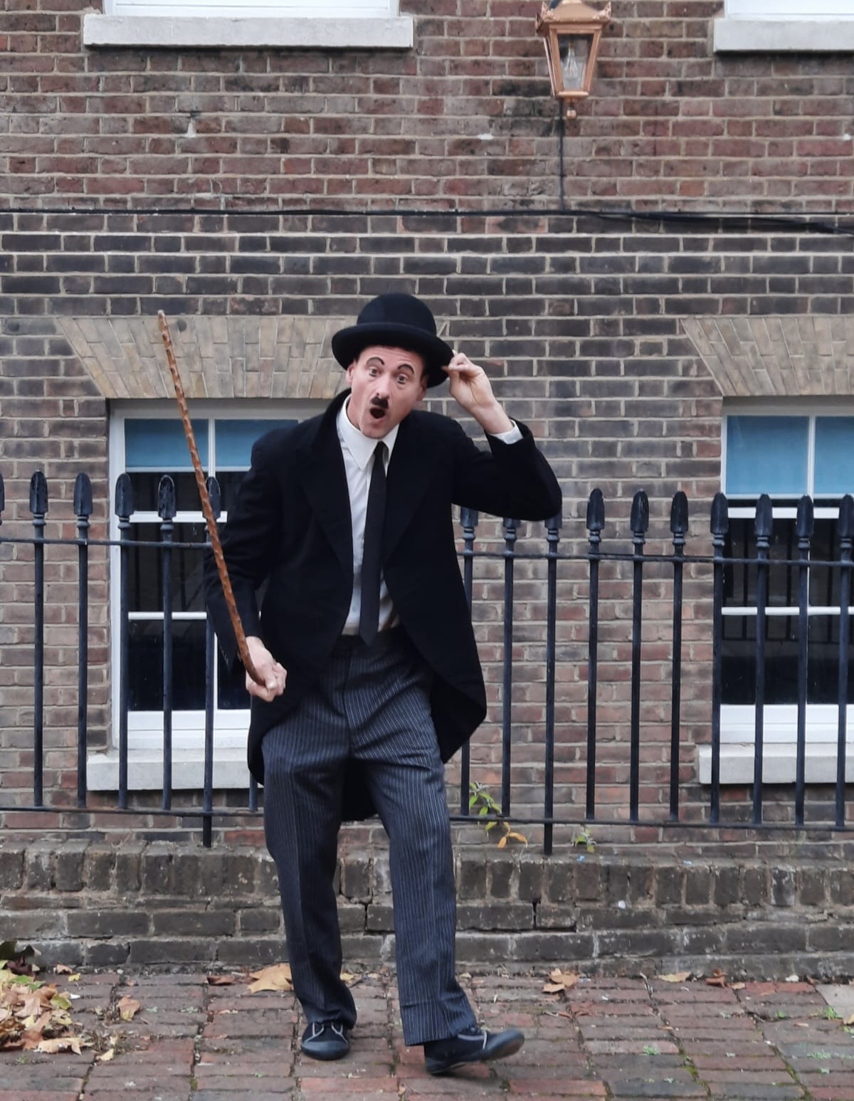 Charlie Chaplain character suitable for Nursing/care home entertainment themed events, parties and Carnivals. Interactive show time with meet and greet audience participation. Traditional comedy & movement, hat & cane manipulation, juggling & hand balance as the iconic & timeless Charlie Chaplain.