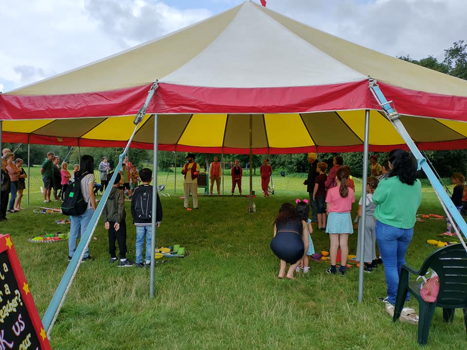 This summer like many families my children & I have been to a few exciting places in search of fun in the sun during the school summer holidays & being a kidz/family entertainer often during the holidays it is fine for me to ‘bring the kids to work’ especially as since covid, my two little clowns now age 8 & 10 have been practicing their circus skills & can perform in some of the shows or help to inspire other children at circus workshops with me when they want too, for pocket money & popcorn of course! Also the big change about circus pazaz that comes with the small but complete bigtop show is that like many small businesses after the uncertain covid period we were very close to closing down completely, especially as our old but well looked after tent was now well over 20yrs old & we were aware the canvas top & walls were in need of replacing. However, we are pleased to say that Tilly Twist who has been involved for the majority since 2013 has now become joint partner! We are proud to say that we did visit all the schools that we had booked in since 2019 as well as many new schools booking in 2022 – from Eastbourne to Pontypridd this summer ’22 we set up our little bigtop show in over 30 locations! (you can read more about circus pazaz’s summer tour here)